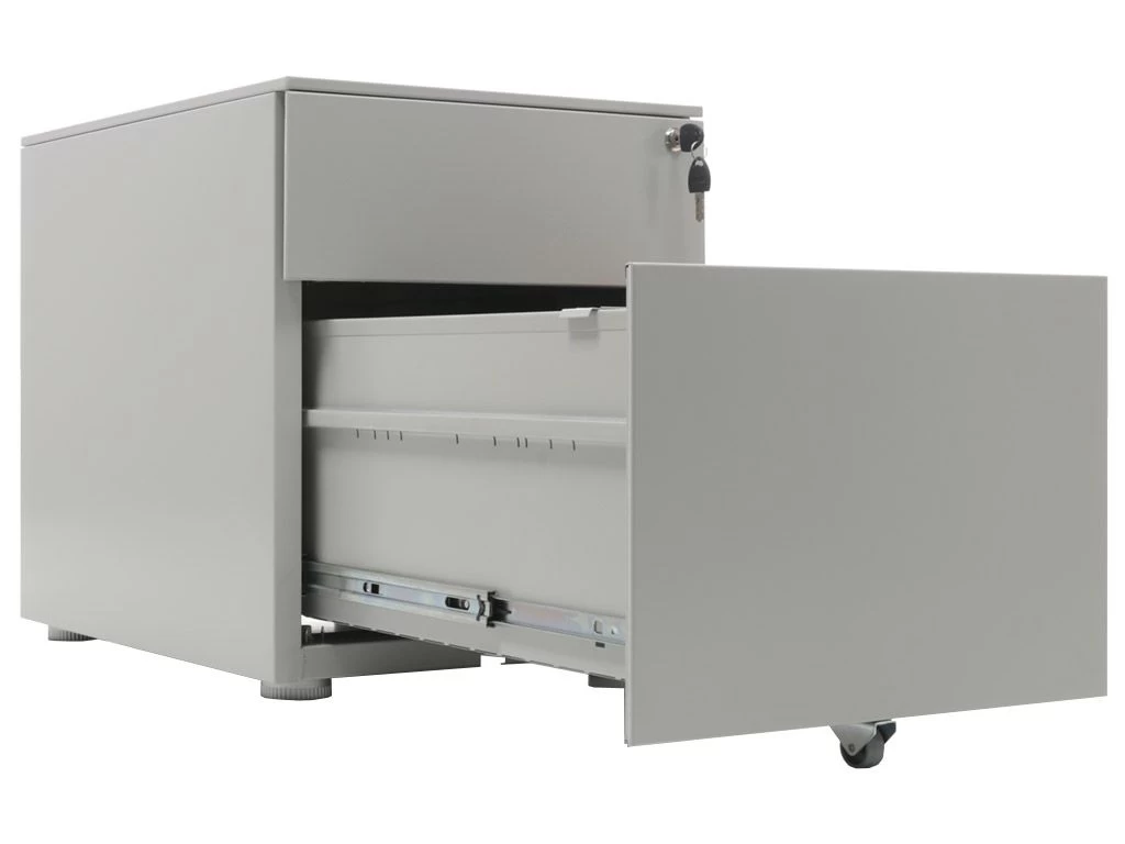 Тумбы изготавливаются из качественных сортов стали с жестким сварным корпусом и с расчётом на длительное интенсивное использование. Это доказывают результаты промышленных испытаний, при полноценной загрузке составляющей до 10 кг. на ящики для канцелярских принадлежностей и до 25 кг на нижние файловые ящики. Файловые ящики плавно и без усилий выдвигаются на всю глубину благодаря наличию телескопических направляющих и системе полного выдвижения ящиков.