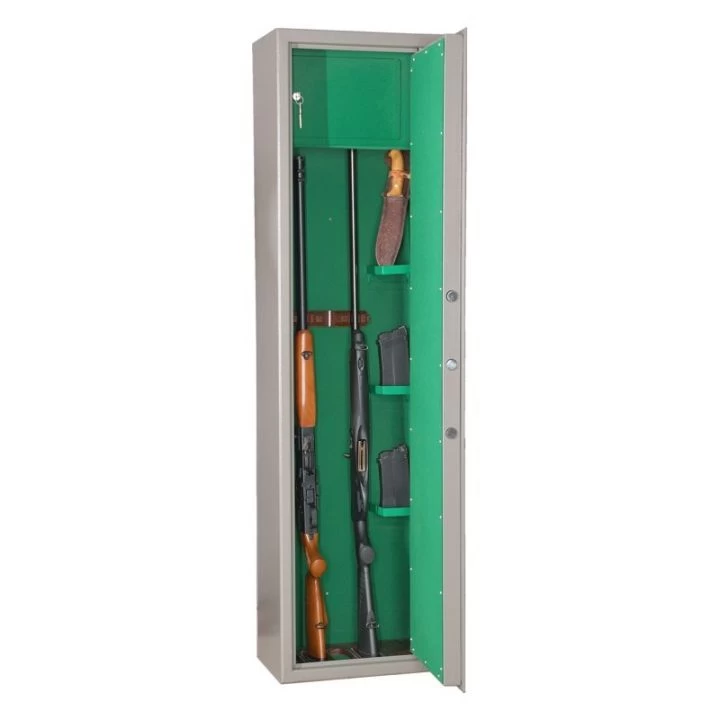 Классическая модель оружейного сейфа с оптимальной вместимостью и надежной защитой. Подходит для хранения длинноствольного оружия и патронов. Компактные габариты позволяют разместить сейф в доме или офисе.